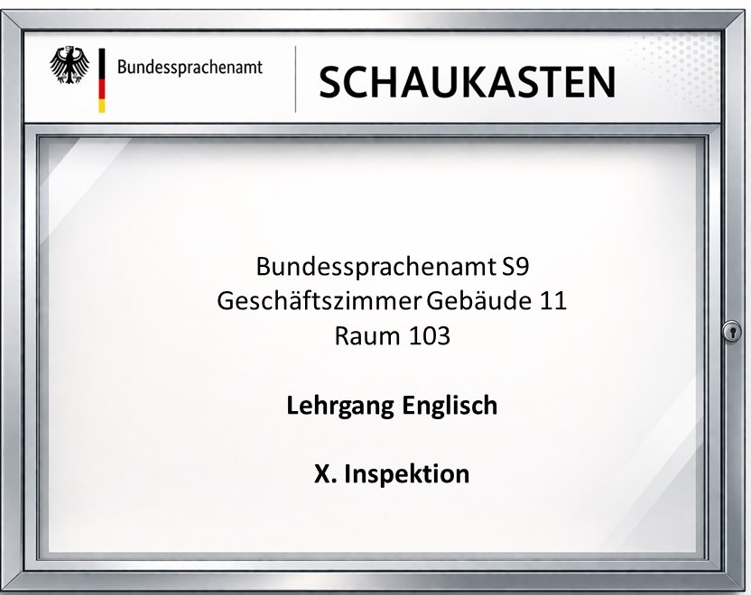 BSprA S9 Geschäftszimmer Gebäude 11 - Schaukasten